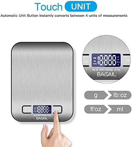 The BAGAIL Digital Kitchen scale is an excellent choice for anyone looking for a reliable and accurate food scale. With its maximum weight capacity and precision, it is perfect for measuring ingredients accurately and precisely. Its stainless steel design is also easy to use and maintain. It is a great addition to any kitchen.