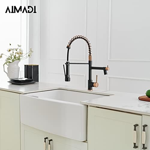 Matte Black Kitchen Faucet AIMADI – Commercial Kitchen Faucets Single Handle Single Hole Spring Rose Gold Kitchen Faucet with Pull Down Sprayer Black