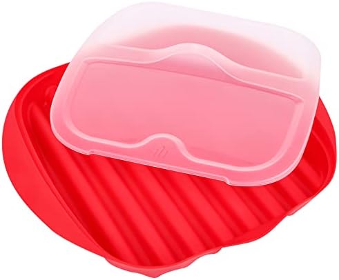 This product is intended for those who enjoy cooking bacon in the microwave, and want a convenient and safe way to do so. The Microwave Bacon Maker Cooker with Lid and Tray is made of food-grade materials, and measures 11.0 inches long by 9.8 inches wide and 2.4 inches high. Its red color adds a pop of fun to the cooking process.