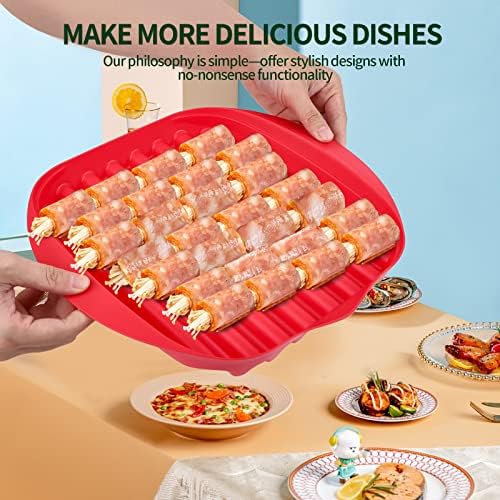 【Innovative Design】 Bacon Tools features a vented cover to prevent grease splatter and a recessed handle for easy removal.Designed with deep grooves to expel excess fat from the bacon.