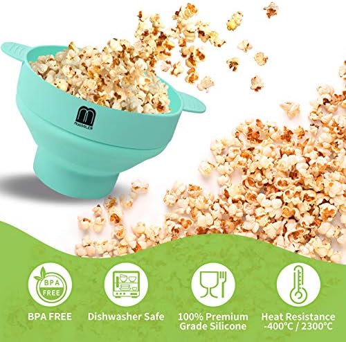 SMART DESIGN:This quick popcorn making utensil is designed with a built-in heat resistant handle that make it easy to remove from the microwave. Be very careful of the steam when taking out popcorn from the microwave.Bowl is uniquely designed to spread heat evenly so not a single kernel is wasted. Serve tasty popcorn with your family and friends.